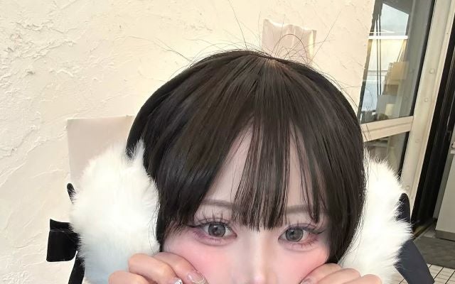 「めずらしく甘め系のメイクしてみた🎀 ネイルは けろみさんにお願いしてるよん今月も可愛すぎるーー🐻❄️💘」と綴り、複数枚の写真を投稿。