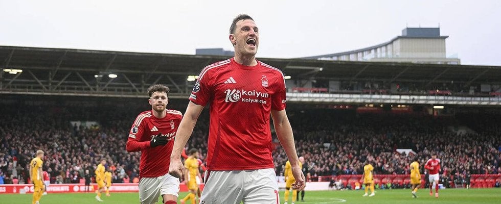 64分、右サイド深くに侵攻したエランガのこの試合3アシスト目でウッドが後半最初のゴールを挙げると、70分にはギブス=ホワイトがボックス内で倒されて得たPKをウッドが冷静に右へ蹴り込み、ハットトリックを達成した。