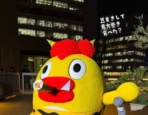 節分の鬼バージョンの衣装をまとい、恵方巻をくわえたそらジローが可愛すぎると話題になっている。