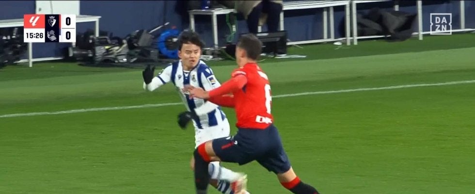 久保は日本時間2月3日に行われたラ・リーガ第22節のオサスナ戦で右のウイングとして先発出場した。すると15分に問題のシーンを迎える。
