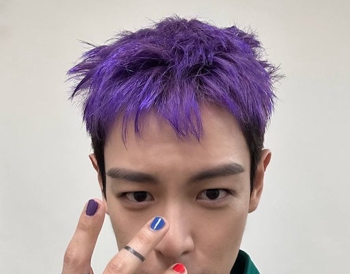 T.O.Pが『イカゲーム』で演じたキャラクター、サノスのオフショットを公開。紫に染めたショートヘアは難易度が高いスタイルながらも、本人の整った顔立ちによって違和感なく馴染んでいる。