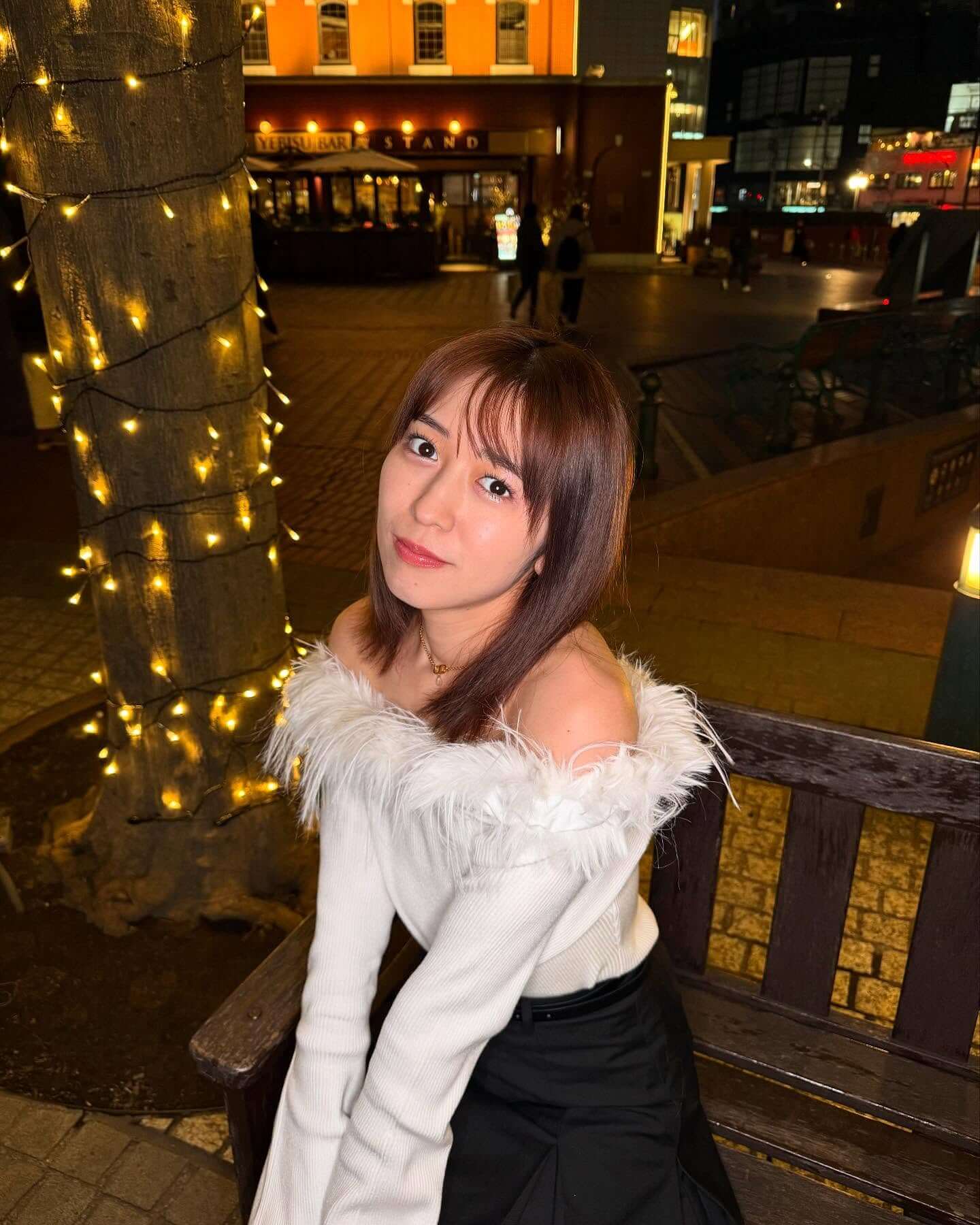 白のオフショルに黒のミニスカートを合わせた可愛すぎる私服ショットを公開した。