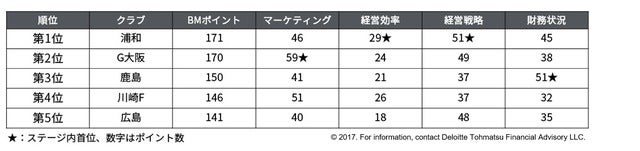 デロイト トーマツ ファイナンシャルアドバイザリーは、Jリーグ所属クラブをビジネスマネジメントの側面からランキングした「Jリーグ マネジメントカップ 2016」を発表した。
