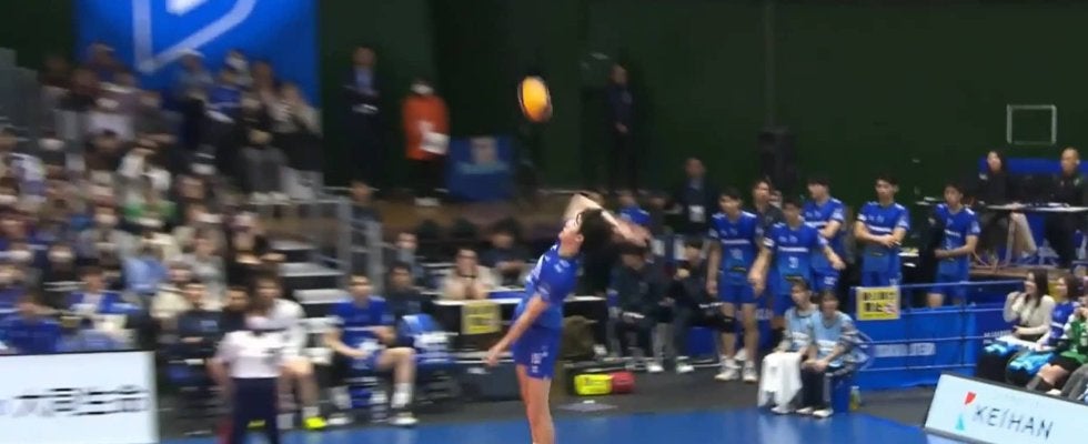 2月1日に行われた大同生命SVリーグの男子第14節で、大阪ブルテオンは広島サンダーズと対戦。第2セットを22-17とリードする場面で、ファン待望のシーンが訪れた。