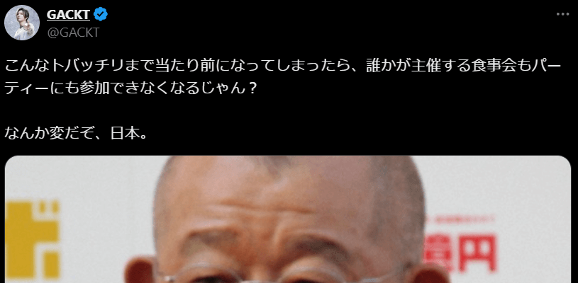 アーティストのGACKTが4日、自身のXを更新。【画像】GACKT、中居正広の引退を受けSNSを更新「裏があるとしか」「…