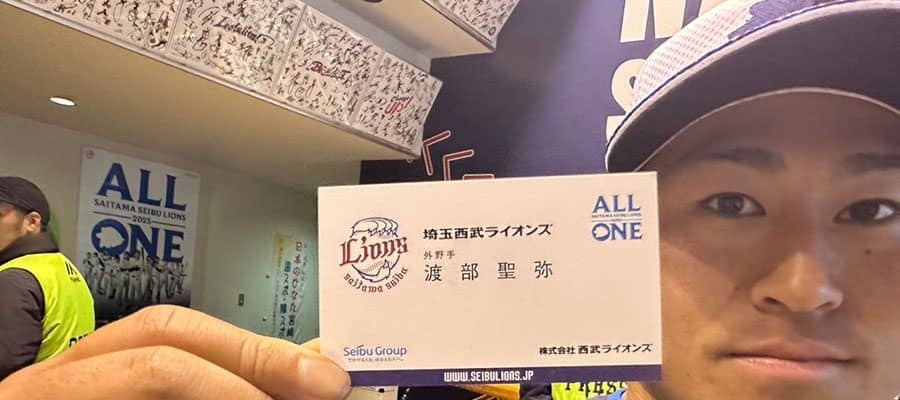 “プロ野球選手と名刺”という取り合わせが、なんともユニークである。既にSNSを通じて認知しているファンも多いようで、ドラフト2位ルーキーの渡部聖弥外野手は「ファンの方々の前を、『すみません、次の練習があるんです』とサインをお断りしながら通り抜ける時に、『名刺をください!』と言われました。忘れずに持ち歩くようにします」と認知度の高さに目を丸くした。