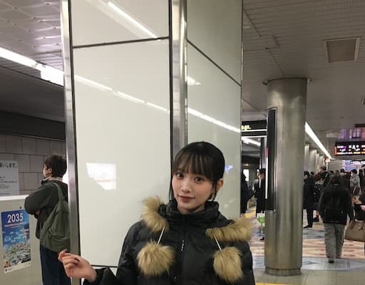 茶色の髪を染め、暖かい服装と絶妙にマッチしている。