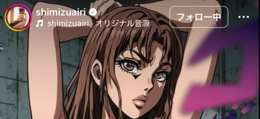 「ジョジョになれるやつやってみた笑ゴゴゴゴいうて。」と綴り、動画を投稿。自身の写真をアニメ『ジョジョの奇妙な冒険』風に加工した動画を公開した。