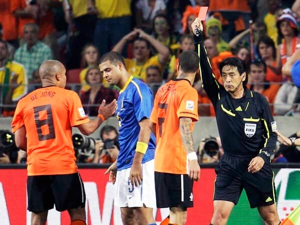 2010年ワールドカップのオランダvsブラジル戦でレッドカードを提示した西村雄一氏