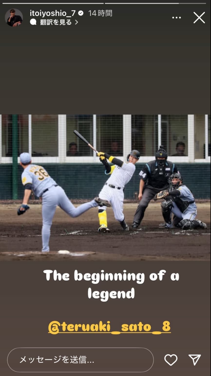 元プロ野球選手の糸井嘉男が9日、自身のインスタグラムのストーリーを更新した。【画像】阪神・伊藤将司が2025年初投稿!!…