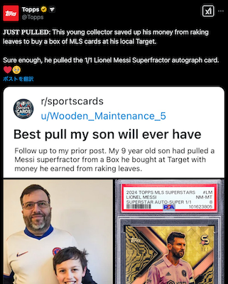 アメリカの老舗スポーツカードメーカーToppsがXを更新した。