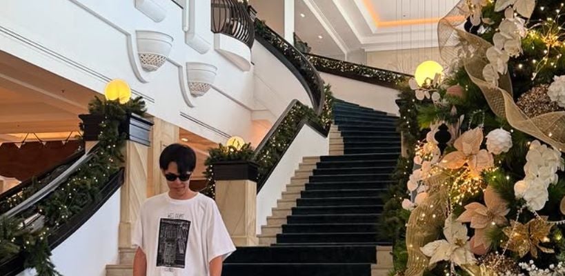 おしゃれな建物の中、クリスマスツリーの横でサングラスをかけているりょうがかっこよすぎると話題になっている。