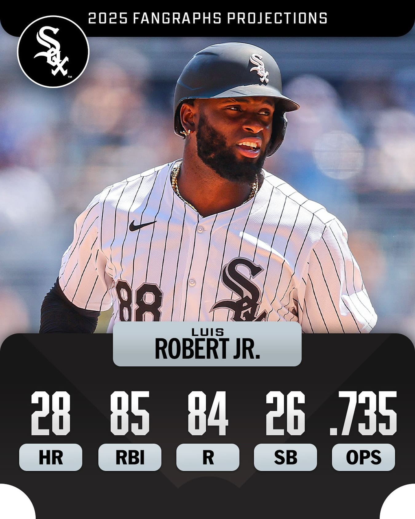 「Is Luis Robert Jr. poised for a big 2025 with the @WhiteSox? 👀」と綴り、来季の成績予想をアップ。