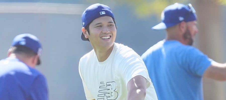 キャンプ地で練習を行うドジャース・大谷翔平【写真:荒川祐史】