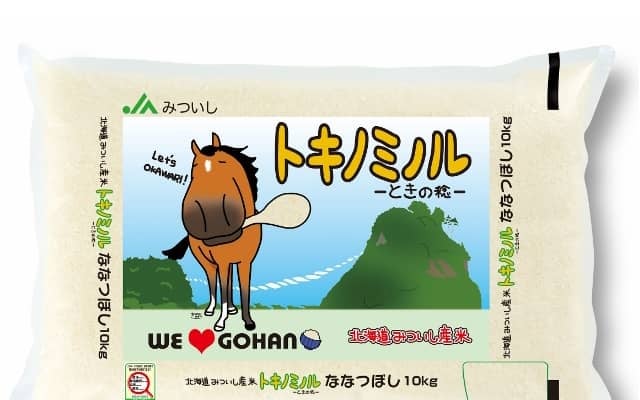 トキノミノルが商品名に採用された理由は、JAみついしがある三石地区で生産された唯一のダービー馬であり、加えて「ミノル」と穀物がよくできることを指す「稔」が重なることから。馬産地でもある日高のお米を消費者にアピールするべく、「馬にこだわったネーミングにしたい」という思いから生まれた。