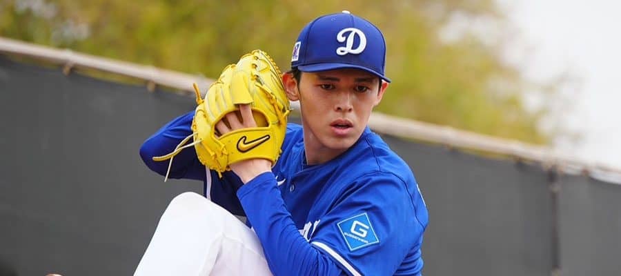 ブルペンで投球を行ったドジャース・佐々木朗希【写真:荒川祐史】