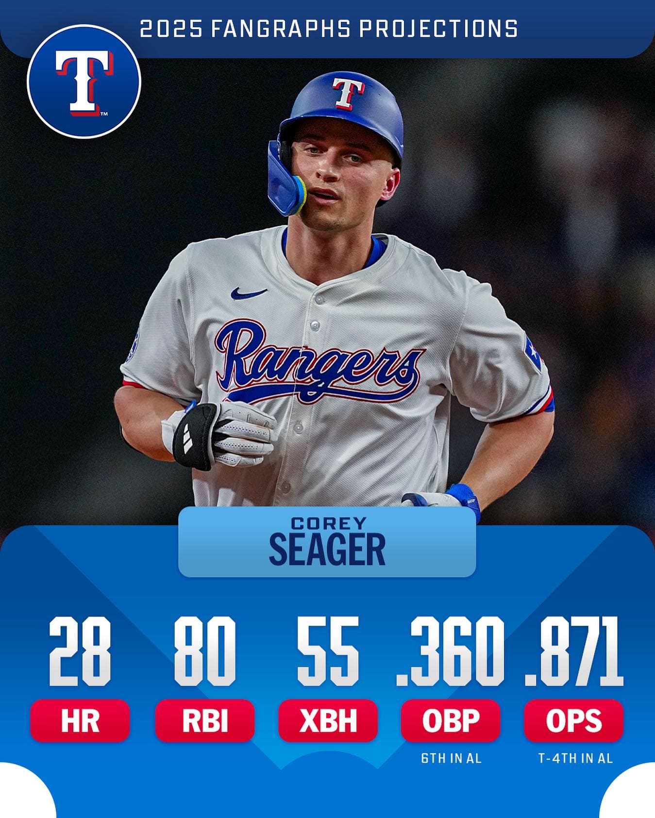 「Will Corey Seager and the @Rangers return to the Postseason in 2025?(コーリー・シーガーと@TAGは2025年のポストシーズンに復帰するか?)」と綴り、成績予想をアップ。