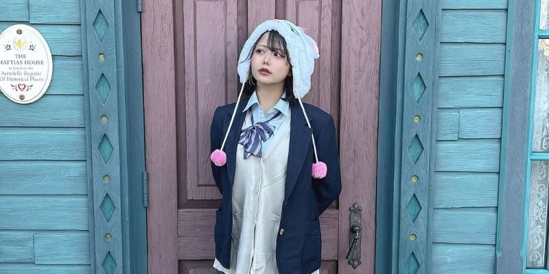 写真には、制服ディズニーを楽しんでいる様子のちなぷぷの姿が。
