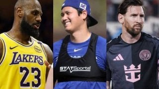 レブロン(左)とメッシ(右)とともにCMに起用された大谷(中央)。(C)Getty Images スポーツ界の“象徴”と…
