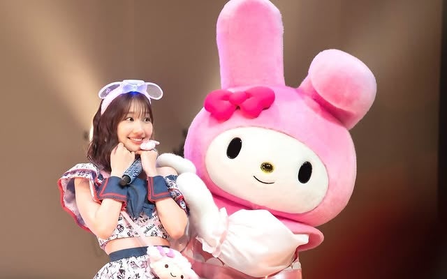 フリフリのアイドル風衣装で、サンリオ人気キャラ「マイメロ」と写ったツーショットが可愛すぎると話題になっている。