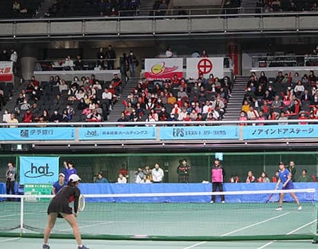 全国実業団の頂点を決める第39回テニス日本リーグの決勝トーナメントが14日に東京体育館で開幕し、全勝で決勝トーナメント…