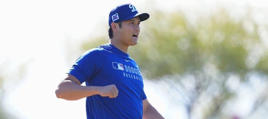 キャンプで汗を流すドジャース・大谷翔平【写真:荒川祐史】