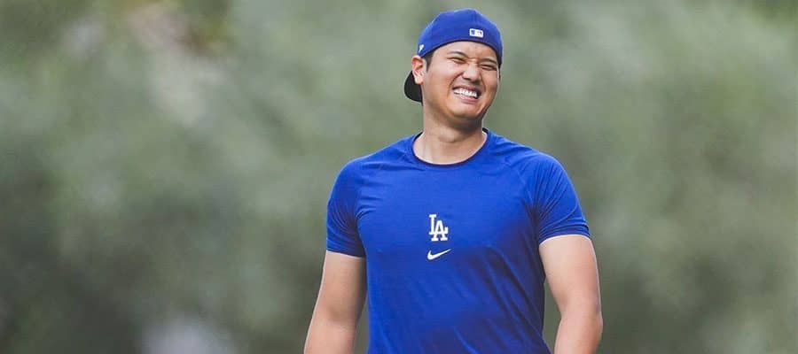 キャンプで笑顔を見せるドジャース・大谷翔平【写真:荒川祐史】