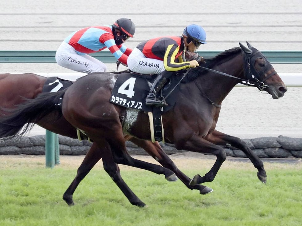 カラマティアノスの戦歴を振り返ってみよう。昨年7月の新馬戦(新潟・芝1800m)、2戦目の未勝利戦(中山・芝1800m)はいずれも3着だったが、10月13日の未勝利戦(東京・芝1800m)で初勝利。続く、こうやまき賞(中京・芝1600m)も勝ち、今回はそれ以来2カ月半ぶりの実戦となる。