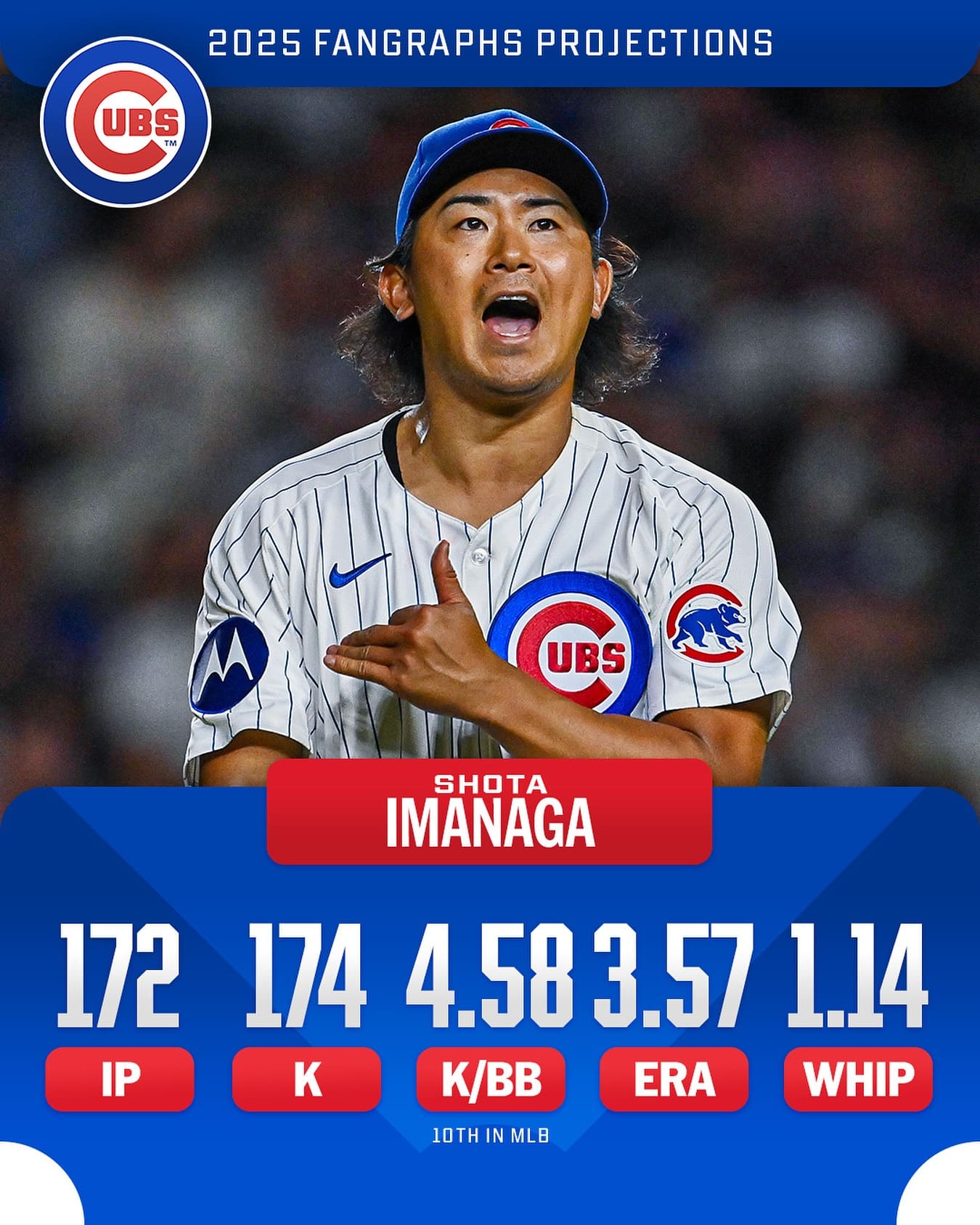 「Will @shotaimanaga have a stellar sophomore season with the @Cubs?」と綴り、今季の成績予想をアップした。