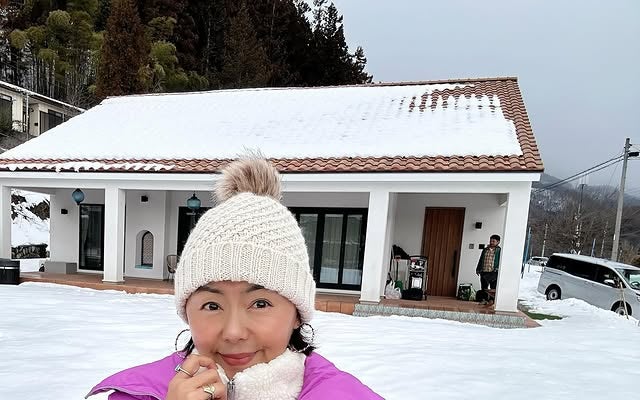 「1ヶ月ぶりの山の家🏠先月はお庭に5センチくらいの雪だったのに、今月は20センチくらい積もってるーーーー☃️」と綴り、自身が写った写真など数枚の写真をアップした。