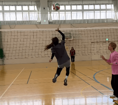 今回は打って変わってバレーボールへの挑戦だ。気合十分、アタックを決めるか否かという場面だが、あと少しが届かなかったようだ。