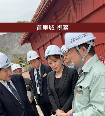 「令和元年の火災で正殿を含む建物が焼失した首里城は、令和4年11月に正殿の復元工事に着手し、令和8年秋の完成に向けた取り組みを進めています。」と綴り、視察の様子が映った動画1本をアップした。