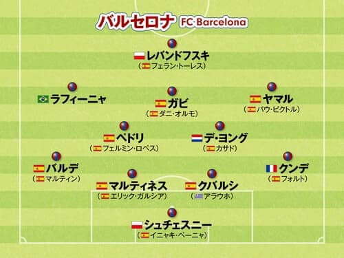MF:ラフィーニャ、ガビ(ダニ・オルモ)、ラミン・ヤマル(パウ・ビクトル)