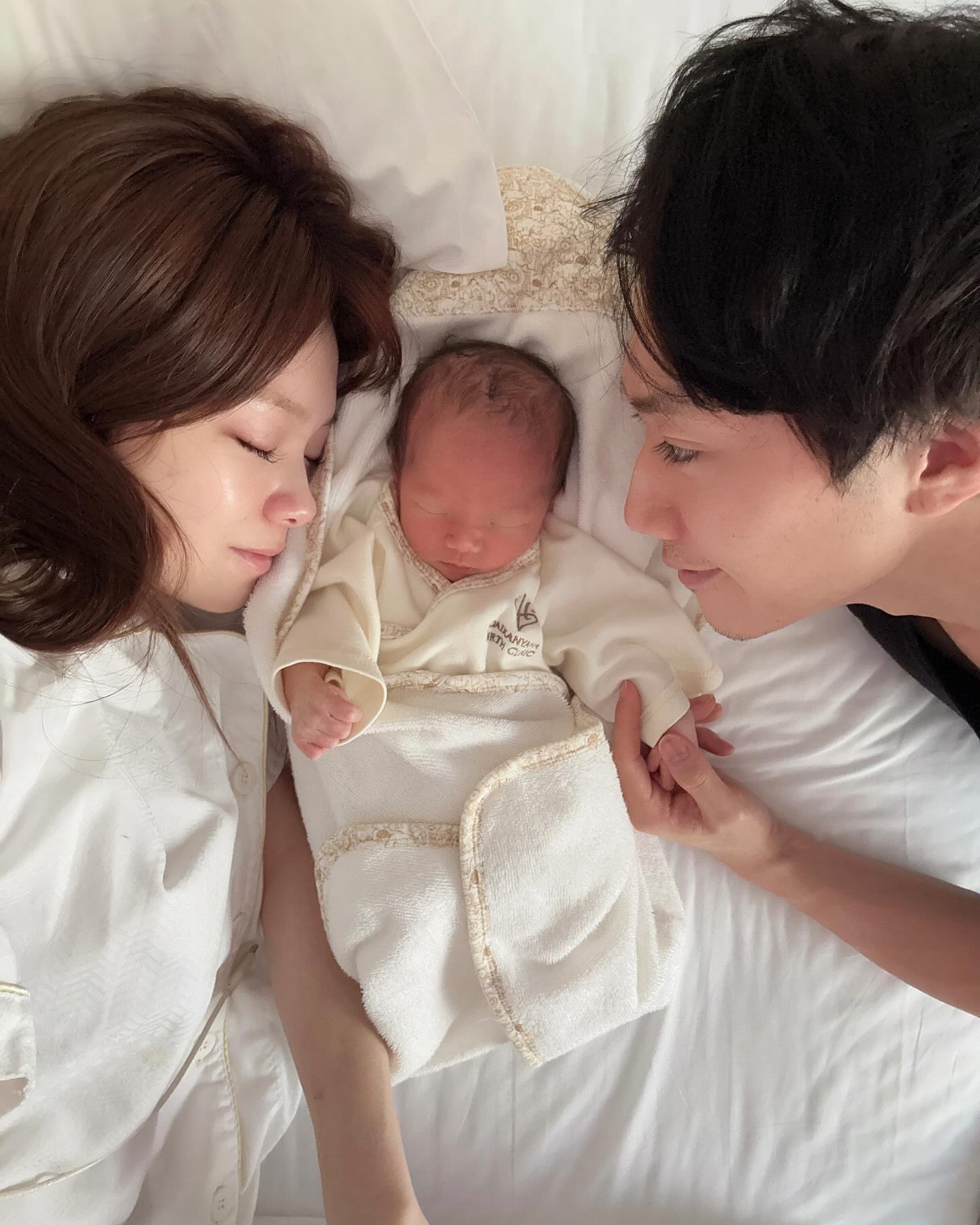 「Welcome to our family 🤍2494gの元気な男の子を出産しました👶🏻✨」と綴り、複数枚の写真をアップ。