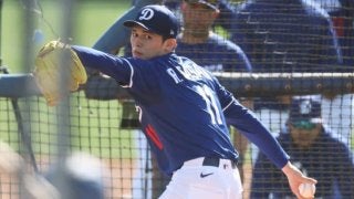 19日に行われたライブBPでマウンドに立った佐々木。その様子は多くの球団関係者と同僚たちが見守った。(C)産経新聞社 米…