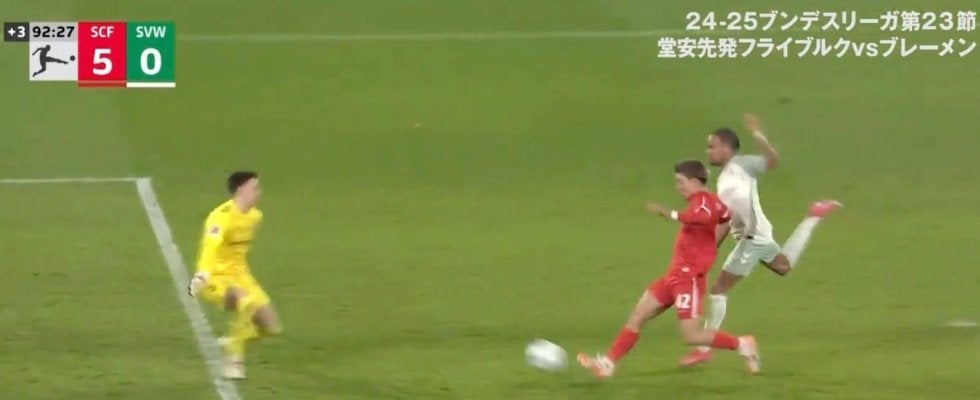 フライブルクの日本代表MF堂安律が、今季初のドッペルパックを達成した。その際に見せた超加速にファンたちが反応している。