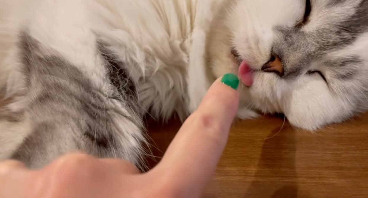 この投稿には多くのいいねの他、「オクラちゃん、可愛い❤️🐈」「びっくりして指引っ込めるのかわいい😂」などのコメントが寄せられている。