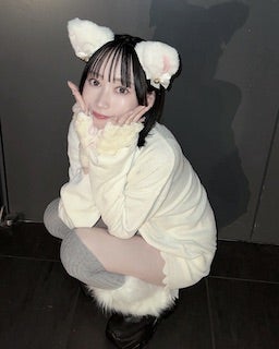 2月22日猫の日にちなんで、白猫姿を披露。大きな猫耳を付け、カメラを見つめる表情は非常に可愛らしい。