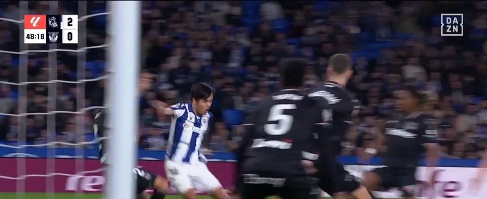 注目のシーンは、ソシエダがホームにレガネスを迎えたラ・リーガ第25節、1-0でリードして迎えた後半早々、48分のことだ。久保が得意のゾーンから違いを見せた。