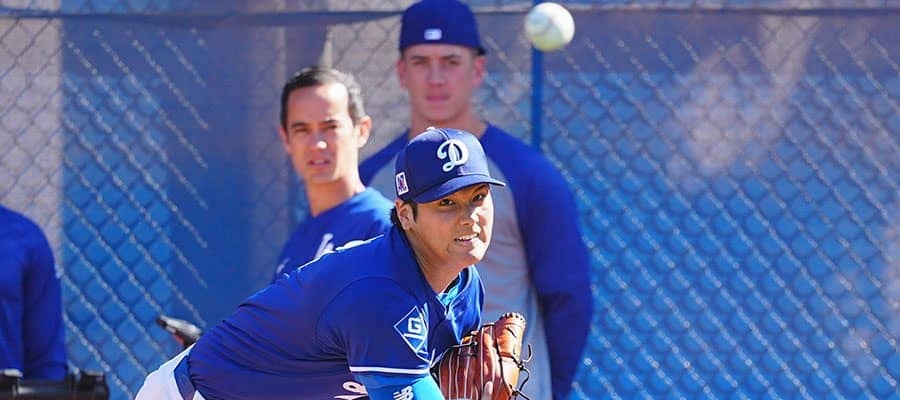 ブルペン入りしたドジャース・大谷翔平【写真:荒川祐史】