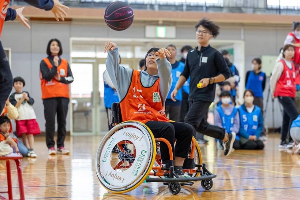 このイベントは三城小学校の創立80周年を記念して実施されたPTA研修事業。2024年5月の同校の運動会の種目のひとつとして、学校の運動会にインクルーシブな種目を導入する「パラサポ!インクルーシブ運動会」の車いすリレーを実施したことをきっかけに、またパラスポーツに触れる機会をつくりたい!と、藤本祥人PTA会長が企画したものです。