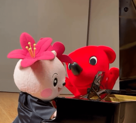 千葉県君津市のマスコットキャラクター「きみぴょん」と一緒にピアノとダンスを楽しむチーバくんの姿にファンもほっこりしたようだ。