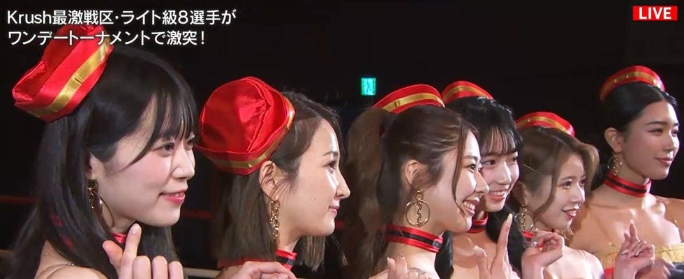 健康的なスタイル美でリングを彩るラウンドガール6人の中で、ひと際目を引く自称”175センチの高身長女子“こと脚長ラウン…