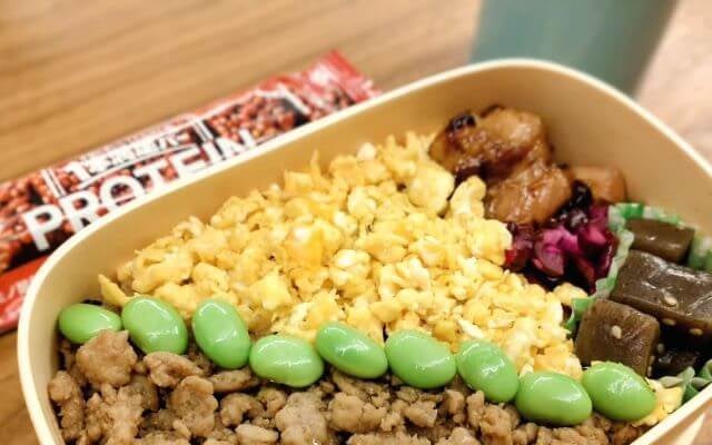 そぼろ×枝豆の栄養愛情満点弁当!プロテインバーもセットで完璧