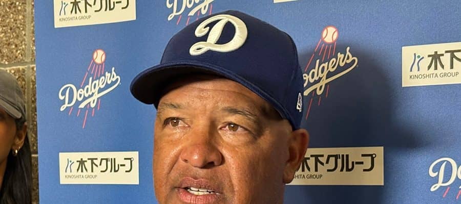 取材に応じたドジャースのデーブ・ロバーツ監督【写真:小谷真弥】