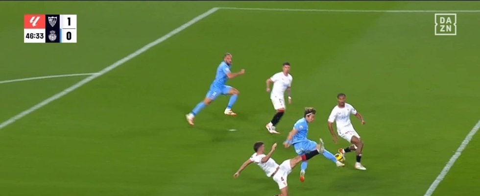 浅野のスピードが生きたのは、ラ・リーガ第25節のセビージャ戦だった。リーグ戦で2試合連続先発出場となった浅野は、FWベダト・ムリキとツートップを形成した。すると1点を追いかける47分に決定機に絡む。
