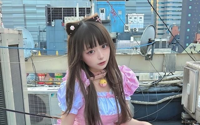 まいきちはピンクのワンピースを着用しており、普段とは違った雰囲気の投稿がとても可愛らしい。