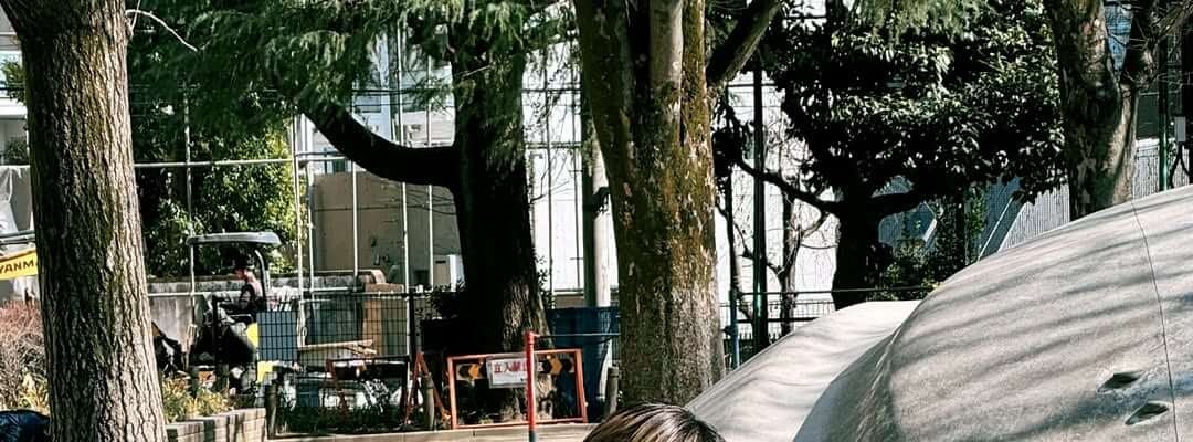 ピースをしながら公園の遊具に跨り、上着なしで春の訪れを感じさせるような写真をアップした。