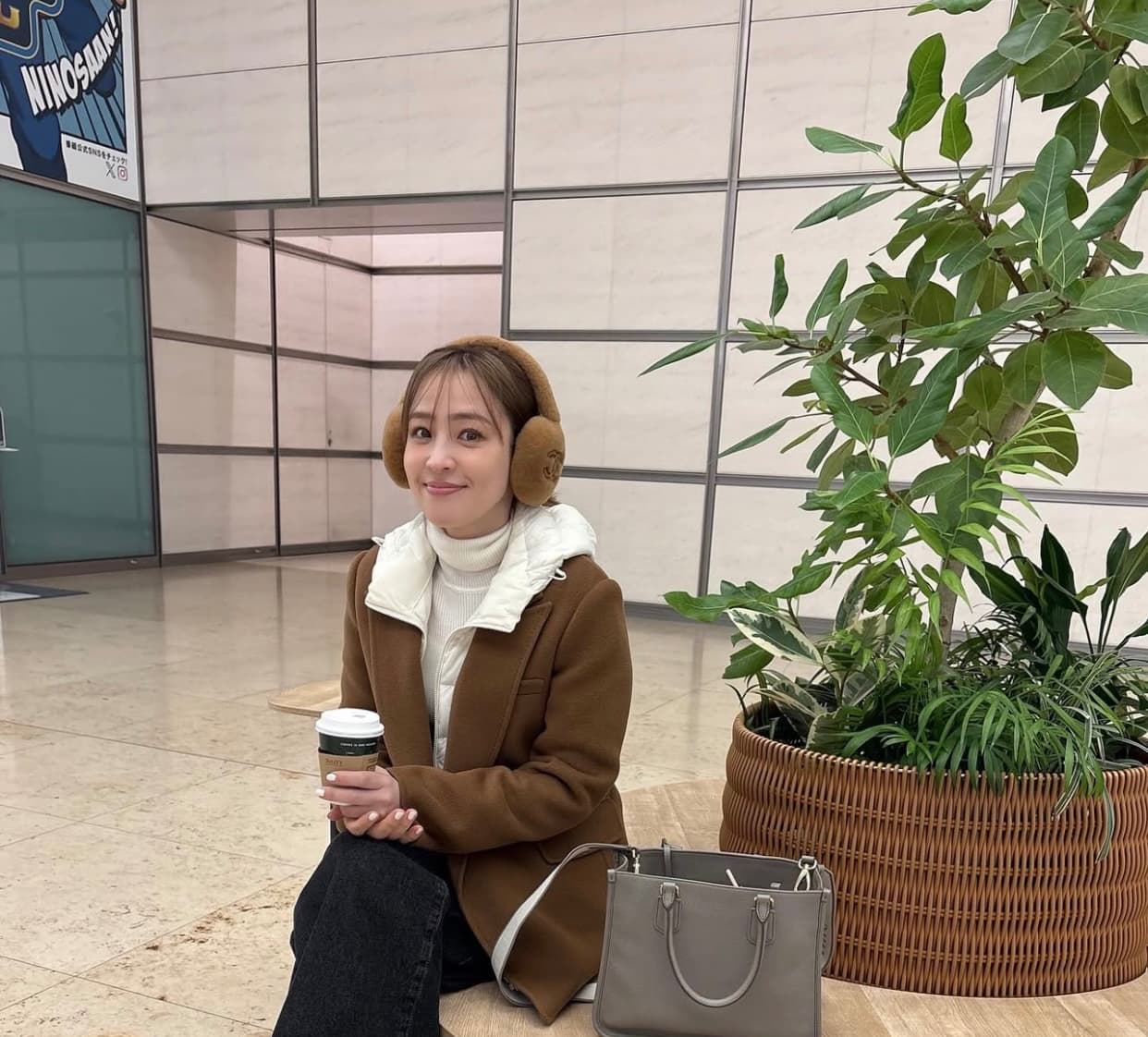 「ほっと一息🐻#たまには#私服」と綴り3枚の写真をアップ。飲み物を持ち、大きな耳当てをしてブラウンのコート&デニム私服コーデを披露。"ほっと一息"にぴったりすぎる大沢の投稿にファンもほっこり気分に♡