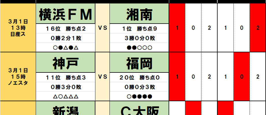 今回のtotoはJ1第4節の10試合と、J2第3節の3試合が対象となっている。過去のデータや直近の様子などから、分析を…